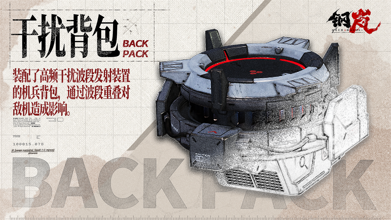 装配了高频干扰波段发射装置的机兵背包,通过波段重叠对敌机的能力造成影响。