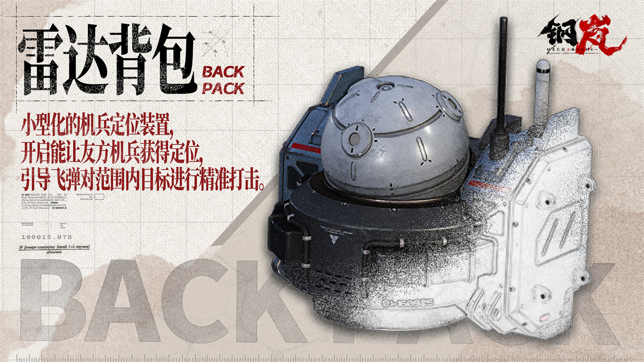 小型化的机兵定位装置,开启能让友方机兵获得定位,引导飞弹对范围内目标进行精准打击。
